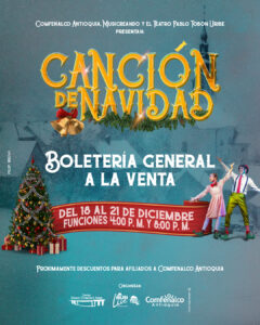 Viviremos la historia de Scrooge, los fantasmas de la Navidad y Tiny Tim en un show lleno de música, humor y emoción que celebra el verdadero espíritu navideño. Todo de mano de nuestros amigos de Musicreando y Comfenalco Antioquia.