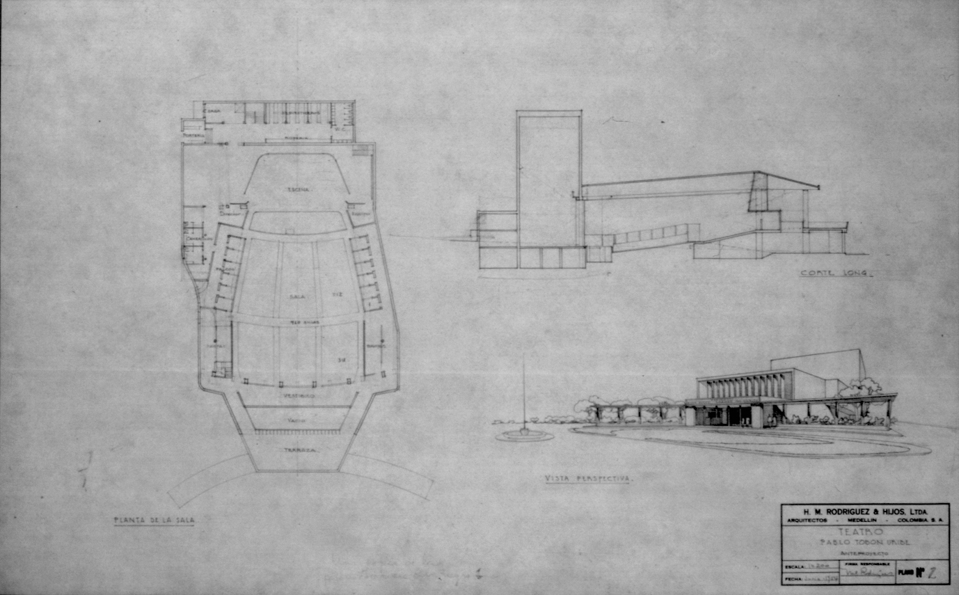 En 1953 se legaliza el terreno para la construcción del teatro. Por el norte mide 102 m y bordea la calle 52; por el sur, 96 m en la calle 51; por el oriente, 24 m en la carrera 39; y por el occidente, 55 m en la carrera 40. En el mismo año se realizó el contrato con la firma H.M. Rodríguez e hijos para la realización de los planos y cálculos del edificio, y el 3 de noviembre de 1954 se aprobaron los diseños y se autoriza a dicha firma para la dirección de las obras de construcción del teatro.
