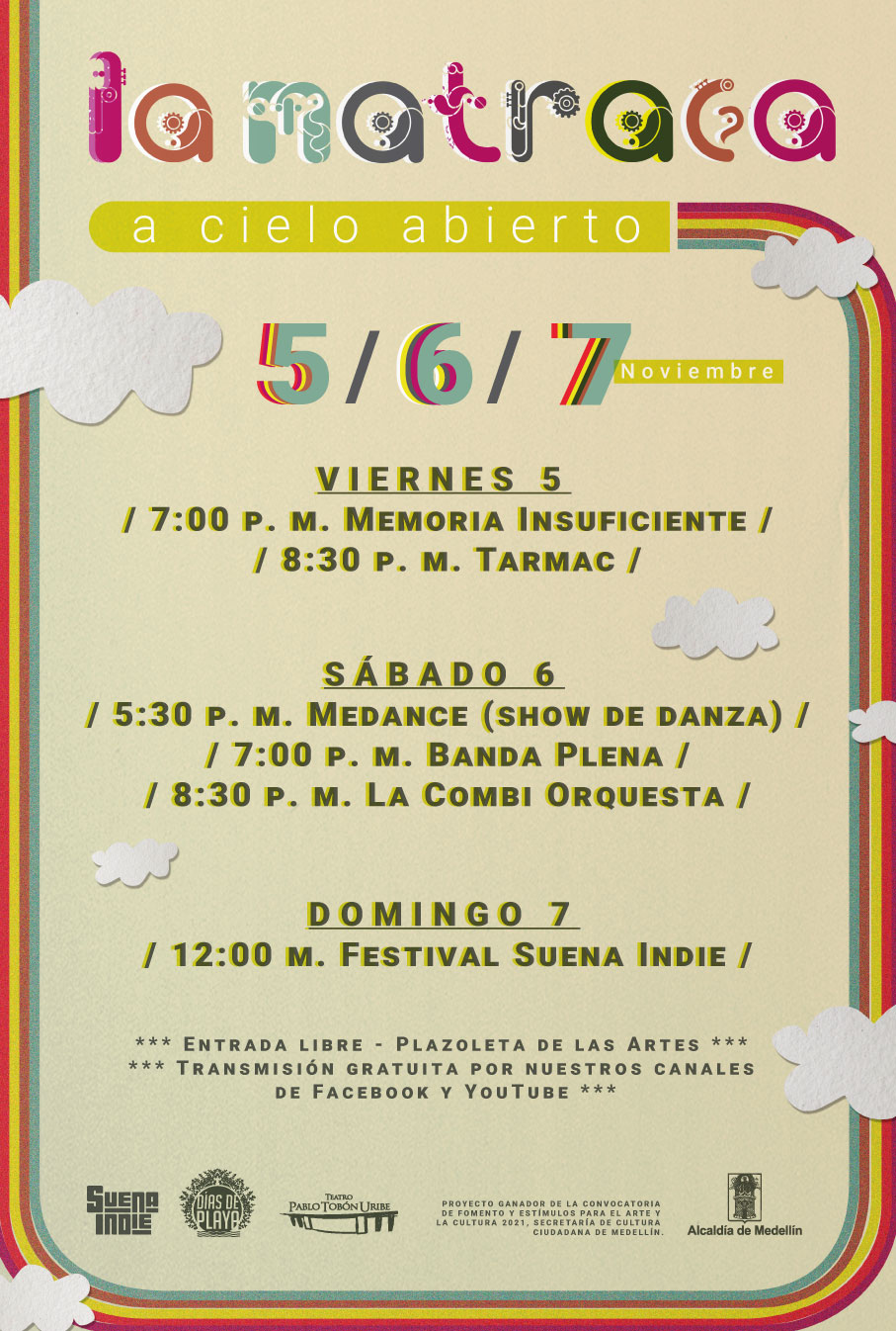 La Matraca es una franja musical producida por el Teatro Pablo Tobón Uribe desde el año 2013, creada como un espacio para reconocer, promocionar y conservar la diversidad sonora de nuestro país. En La Matraca realizamos  una cartografía de los sonidos emergentes, un recorrido por la geografía musical de Colombia y sus principales exponentes que a través de este programa proyectan su talento con nuestros públicos.
